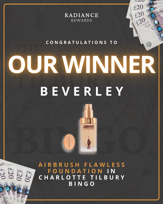 Weโre thrilled to announce that Beverley is one of the lucky winners in our Charlotte Tilbury Bingo, bagging herself the cult favourite Airbrush Flawless Foundation.