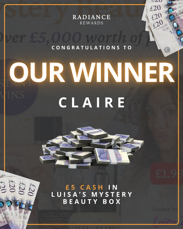 A huge congratulations to Claire, who just picked up £5 cash instantly in Luisa’s Mystery Beauty Box! 💷✨