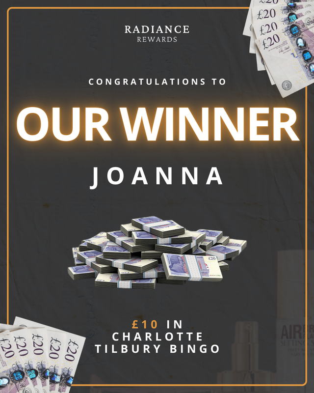 Congratulations to Joanna, our latest winner in the Charlotte Tilbury Bingo competition at Radiance Rewards!