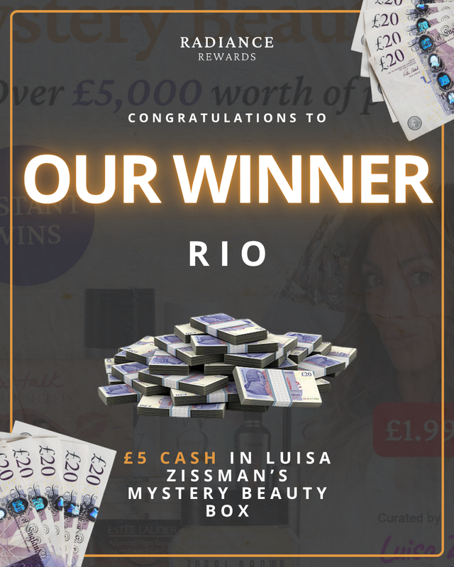 A big well done to Rio, who snapped up a £5 cash prize in our Luisa Zissman’s Mystery Beauty Box competition! 💷✨