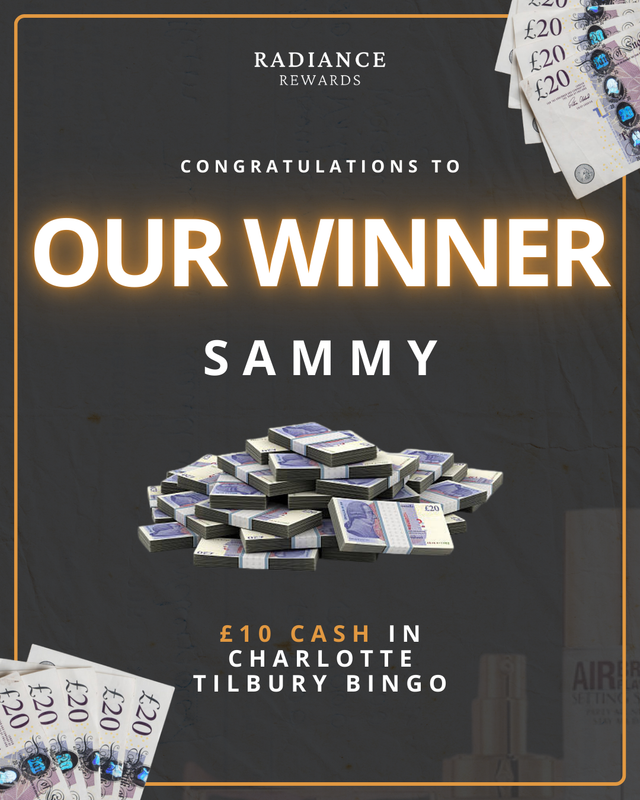 Congratulations to Sammy, our latest winner in the Charlotte Tilbury Bingo competition at Radiance Rewards!