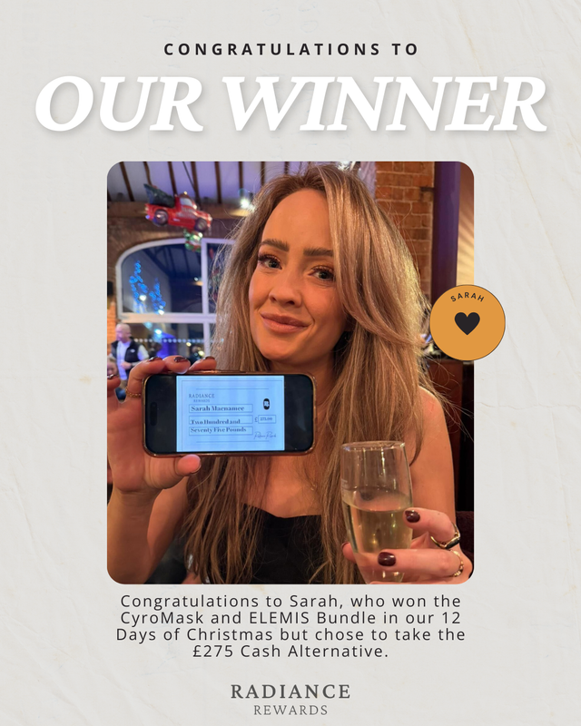 Congratulations to Sarah, who won the CryoMask and ELEMIS Bundle in our 12 Days of Christmas Competition — and chose to take the £275 cash alternative instead! 🎉