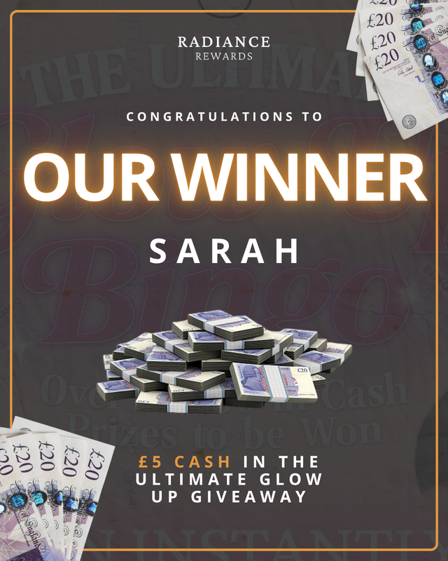 Congratulations to Sarah, who just scored £5 cash instantly in The Ultimate Glow Up Giveaway! With thousands in instant cash prizes to be won, this giveaway is lighting up winners' days across the UK.